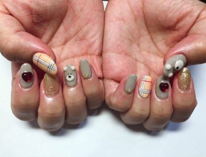 ワンポイントのくまさんが可愛いネイルデザインです☆