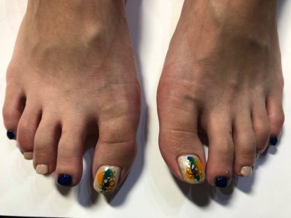 オシャレで可愛いぬりかけ風ネイルデザインをフットにも☆