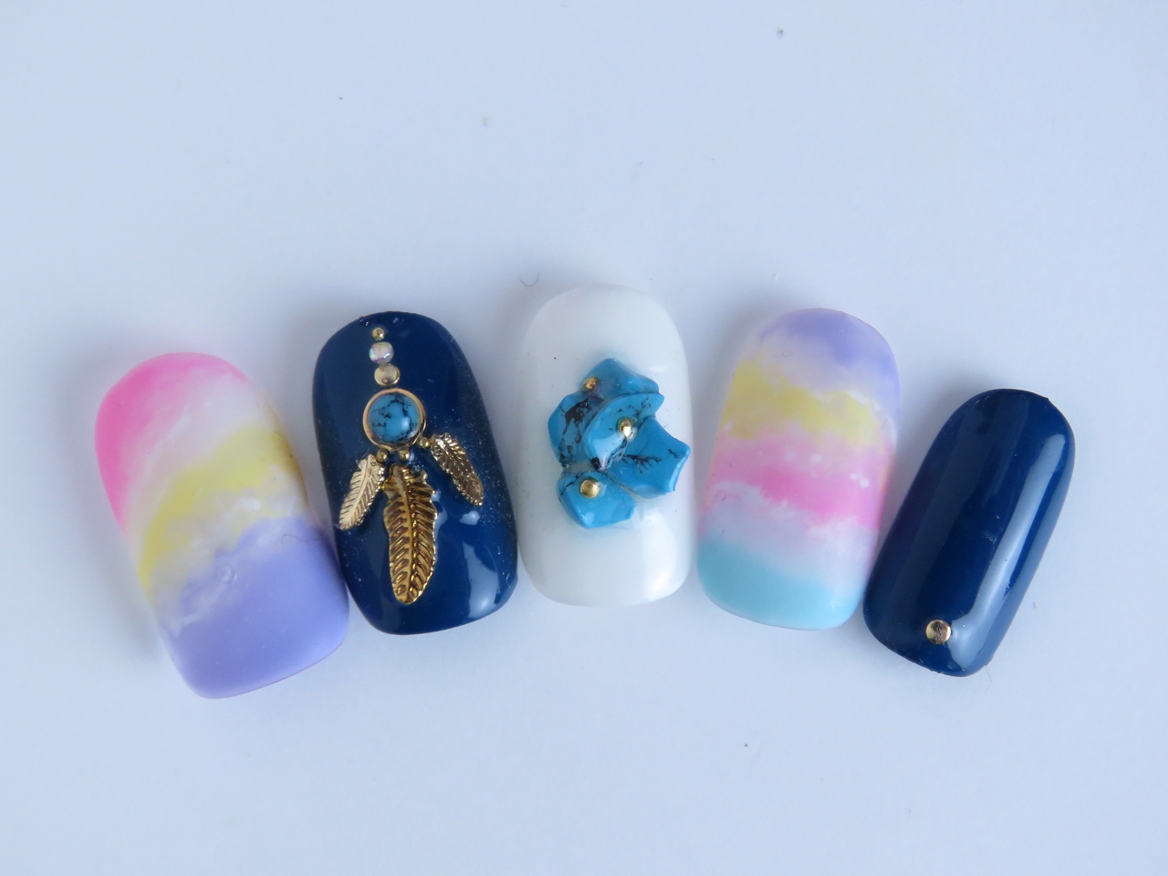 淡い色のグラデーションが綺麗なエスニック調のデザインです☆