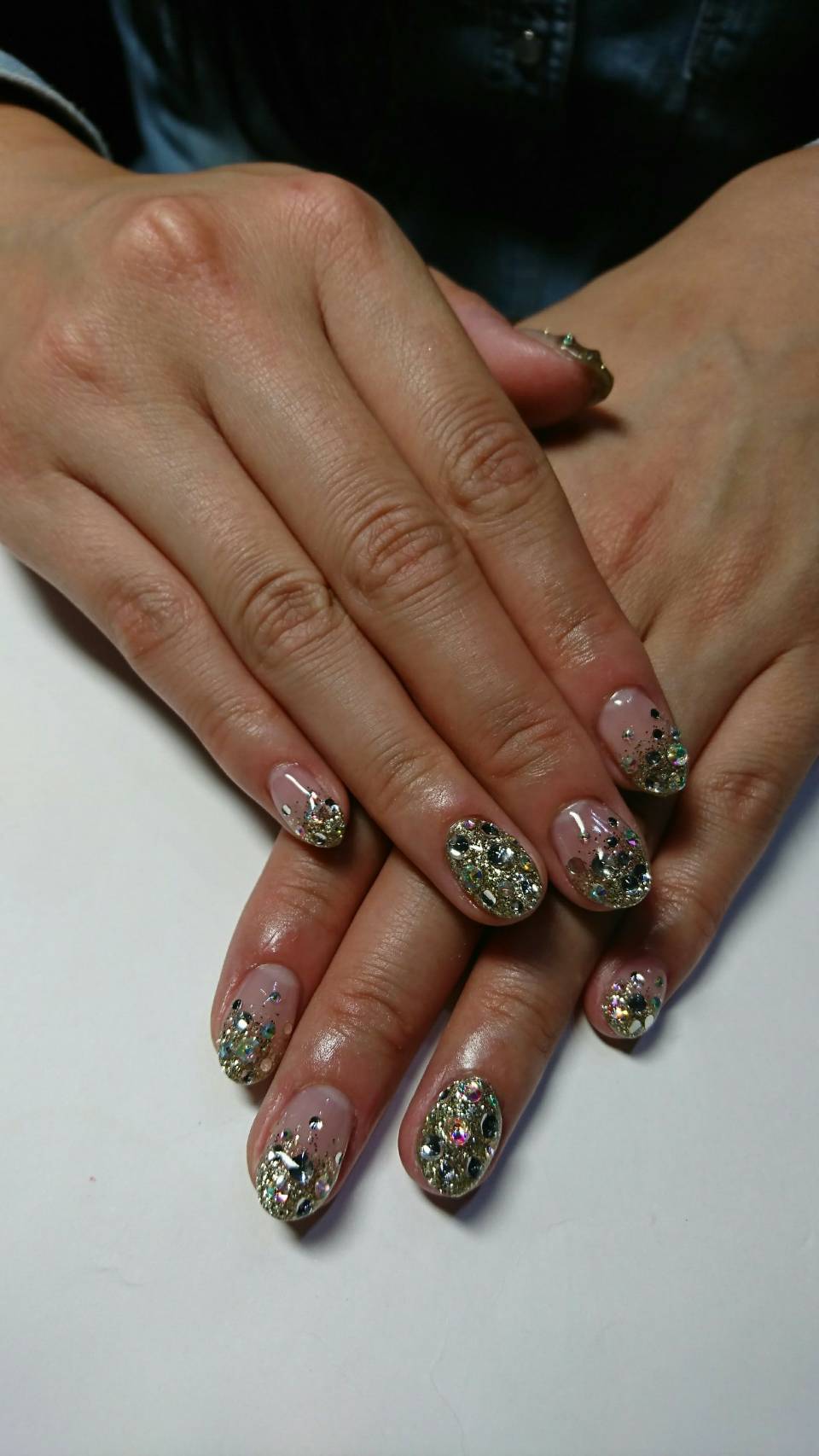 クリアのストーンやラメをふんだんに使用したキラキラ輝くネイルデザインです☆