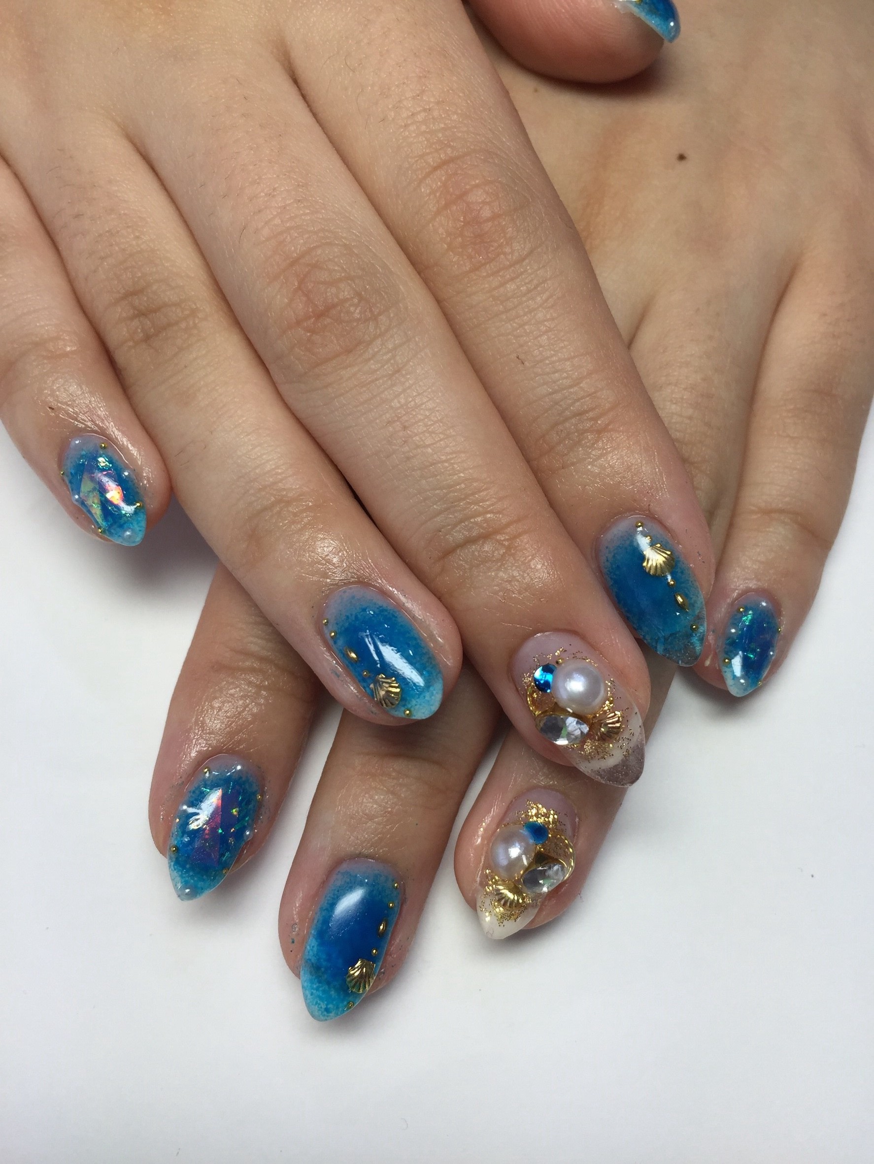 透明感のあるネイルは涼しげでこれからの季節にピッタリです☆