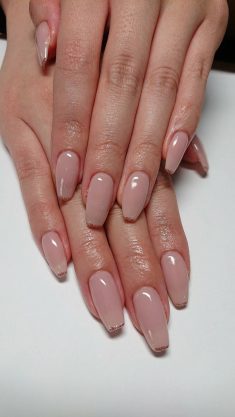 ヌードカラーの指先にさりげないラメが可愛いネイルデザインです☆