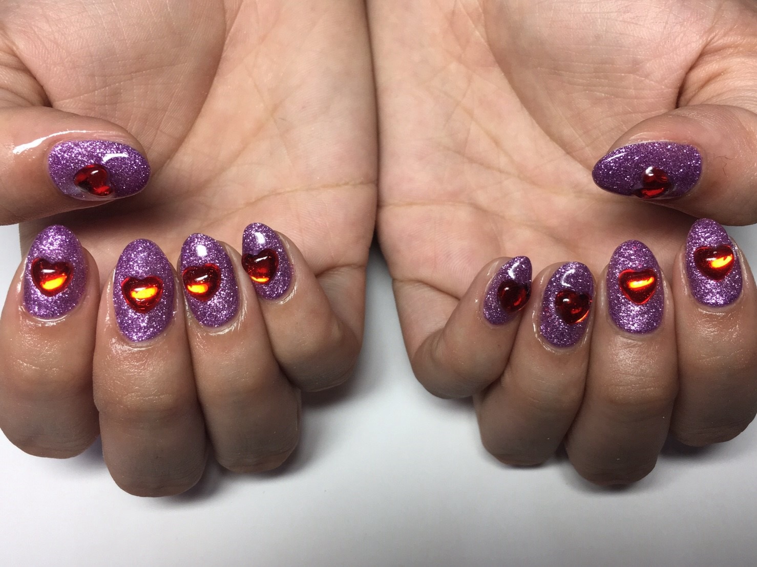 ぷっくりとした立体的なハートが可愛いネイルデザインです☆