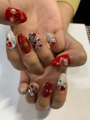 クラウンなどのキラキラアートが可愛いネイルデザインです☆
