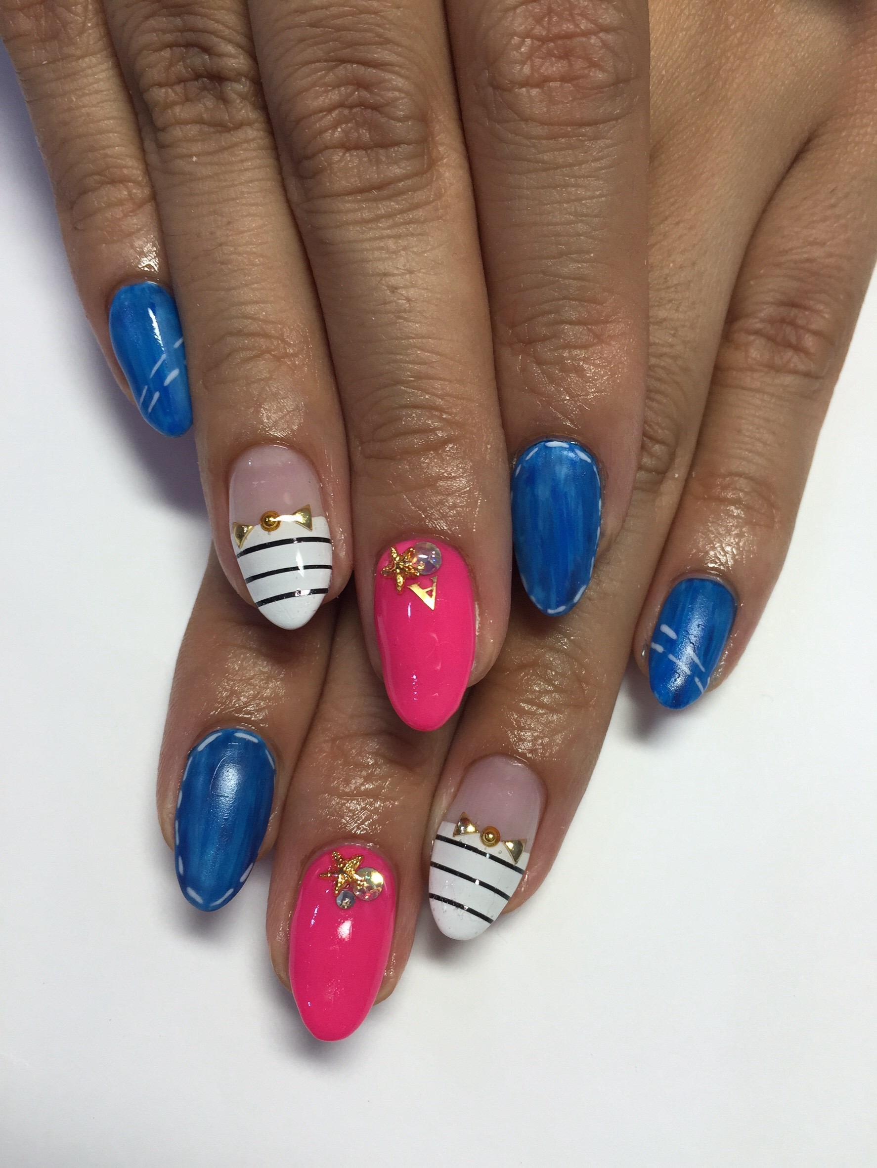 人気のデニムネイルと定番のボーダーを組合せて可愛いデザインができました☆