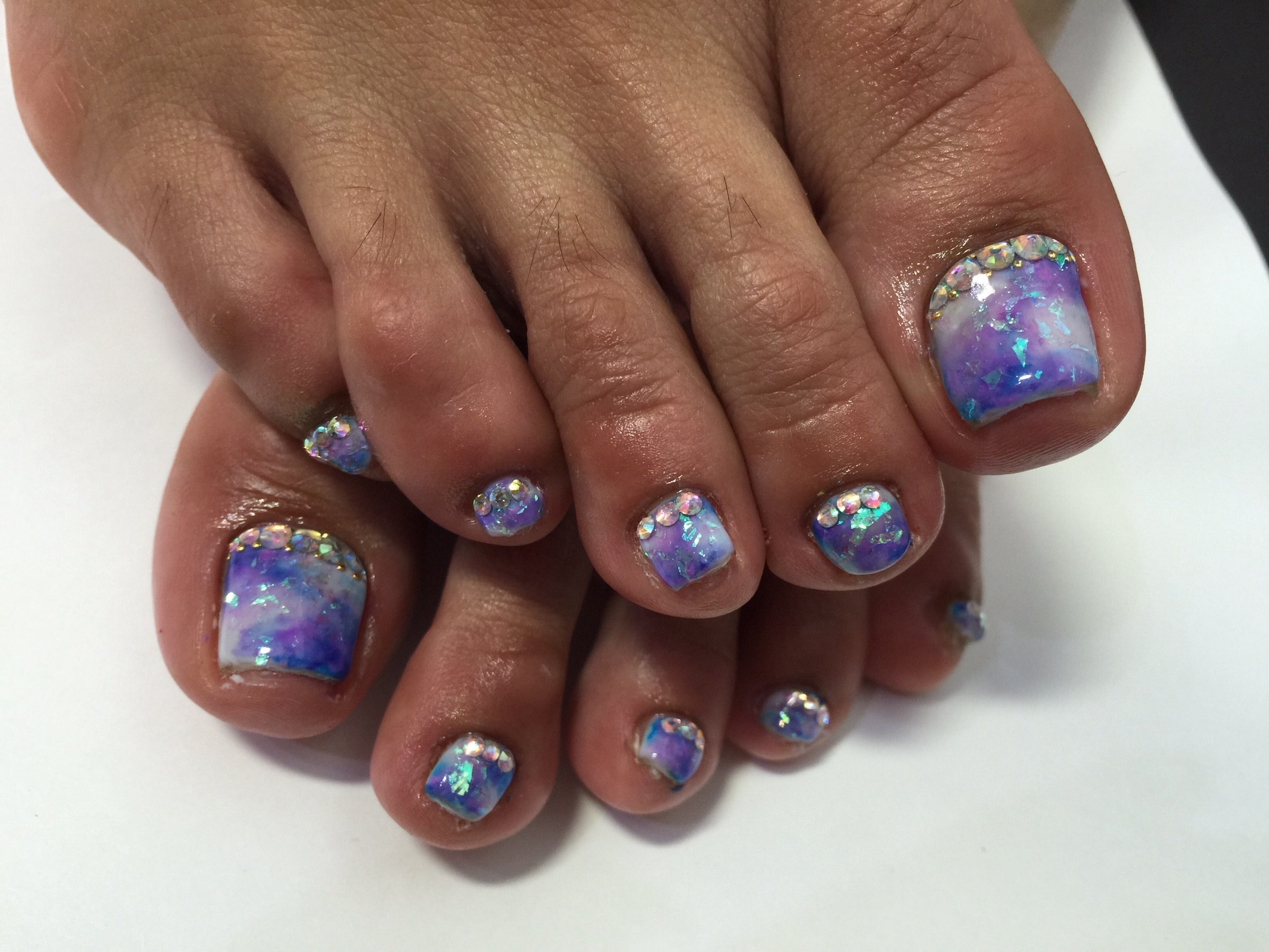 ブルー系のタイダイ柄×ホログラムの大人カジュアルなデザインです☆