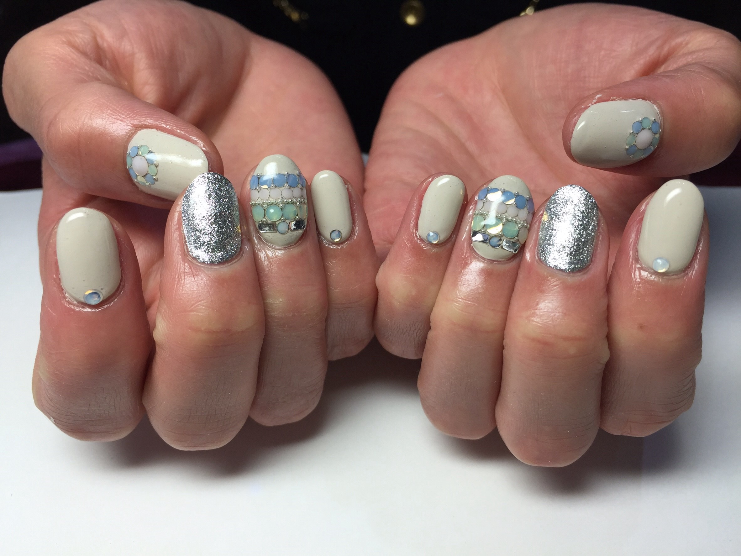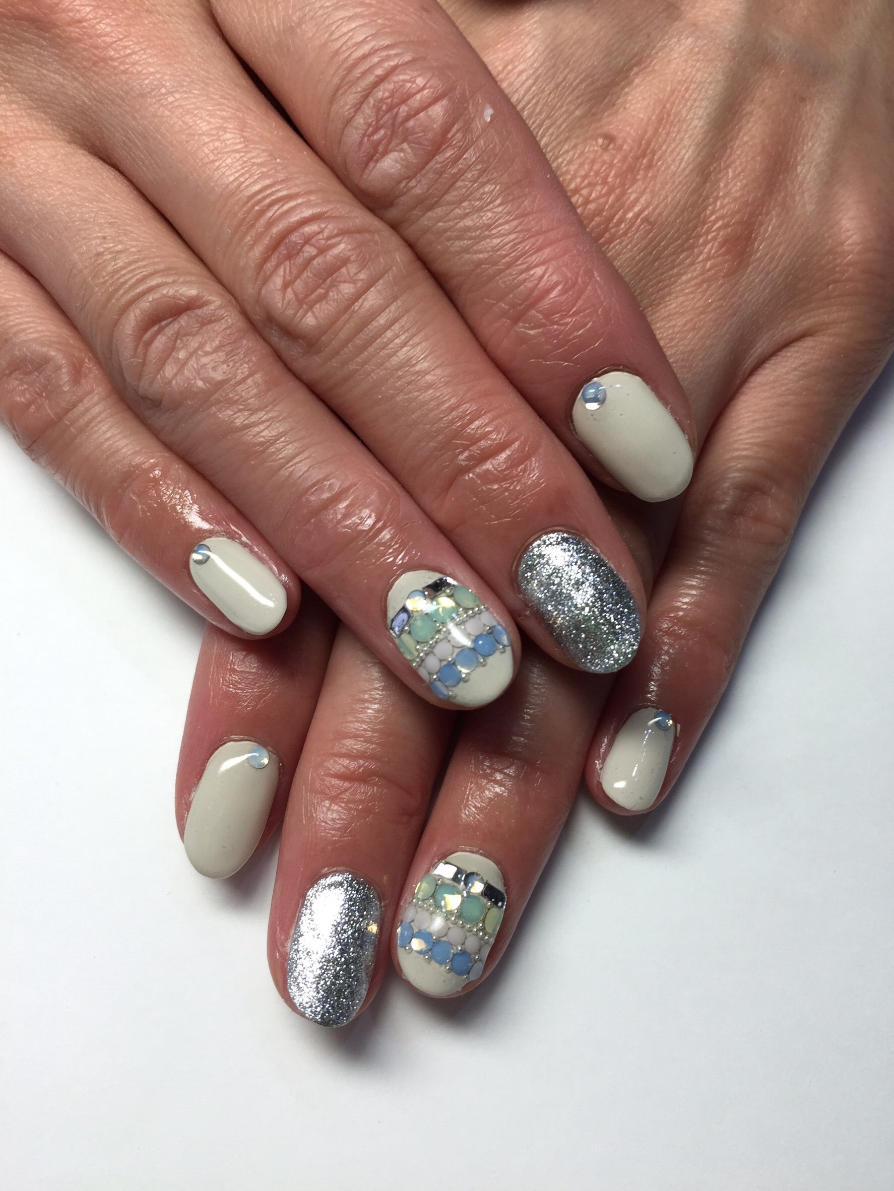 ストーンなどを敷き詰めたネイルです☆