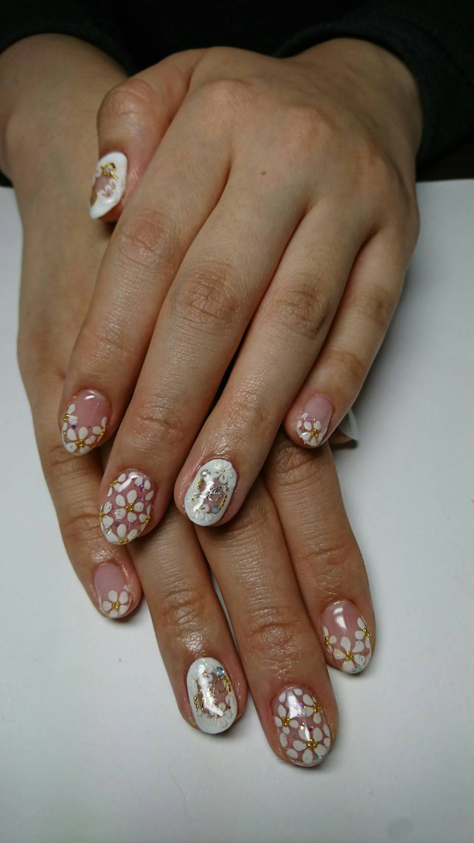 クリアと白で清楚で可愛いネイルデザインに☆