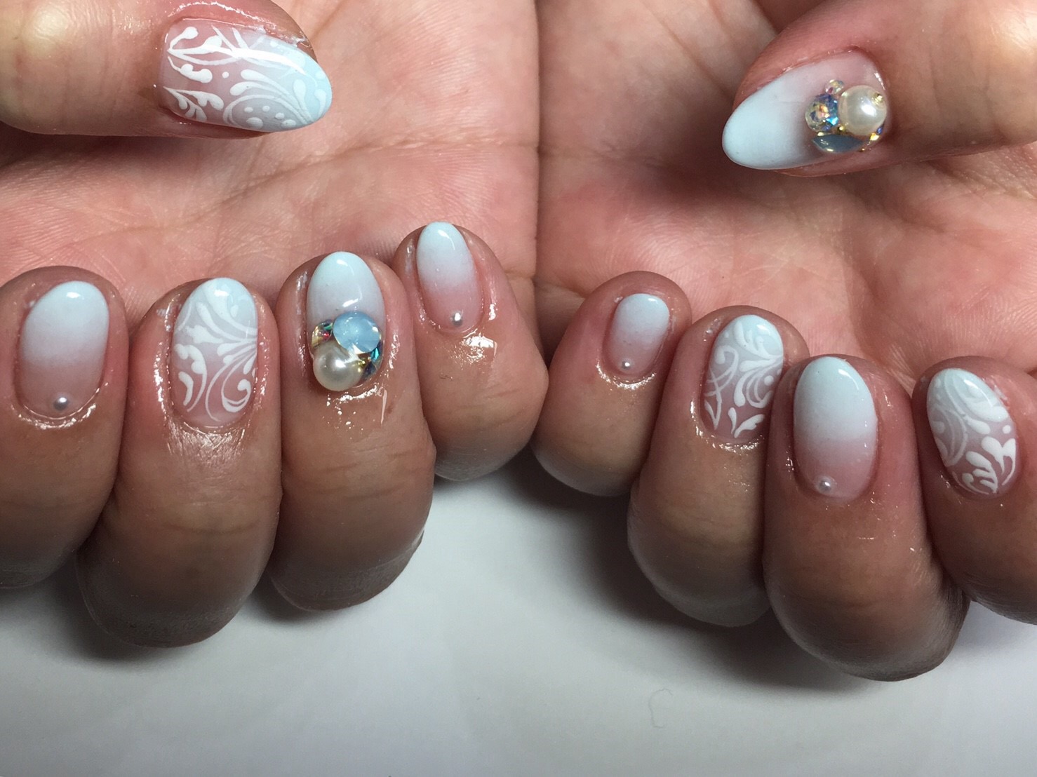 エキゾチックな印象のメヘンディネイルを白でキレイ系に☆