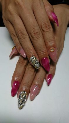 人気カラーのピンクをベースにしたネイルデザインです☆