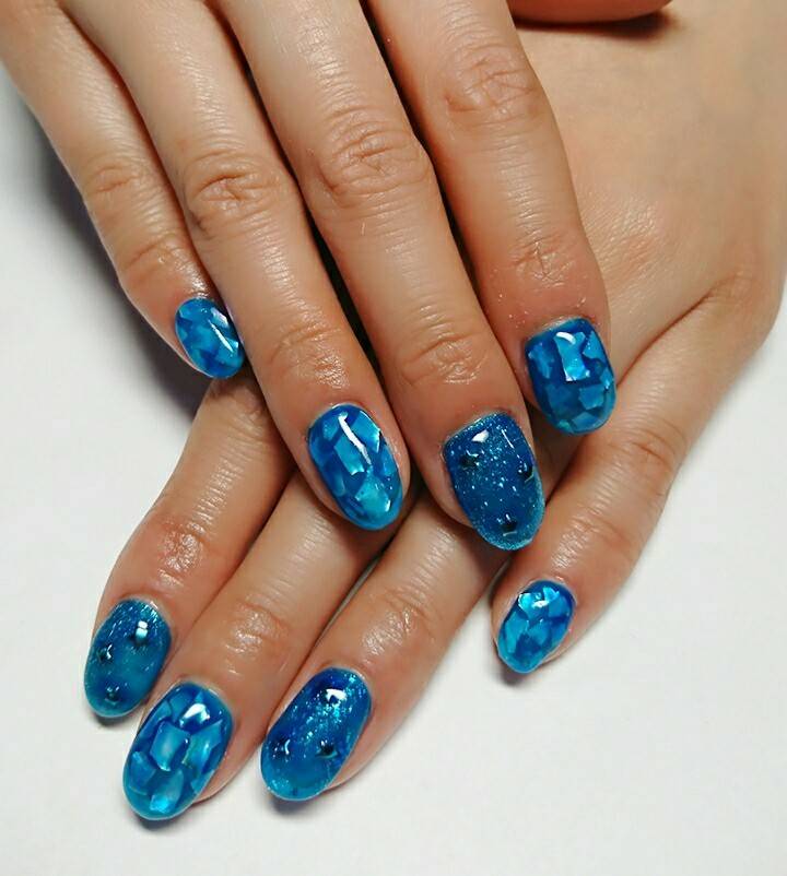お気に入りのパーツを指先に閉じ込めた人気の埋め込みネイルです☆
