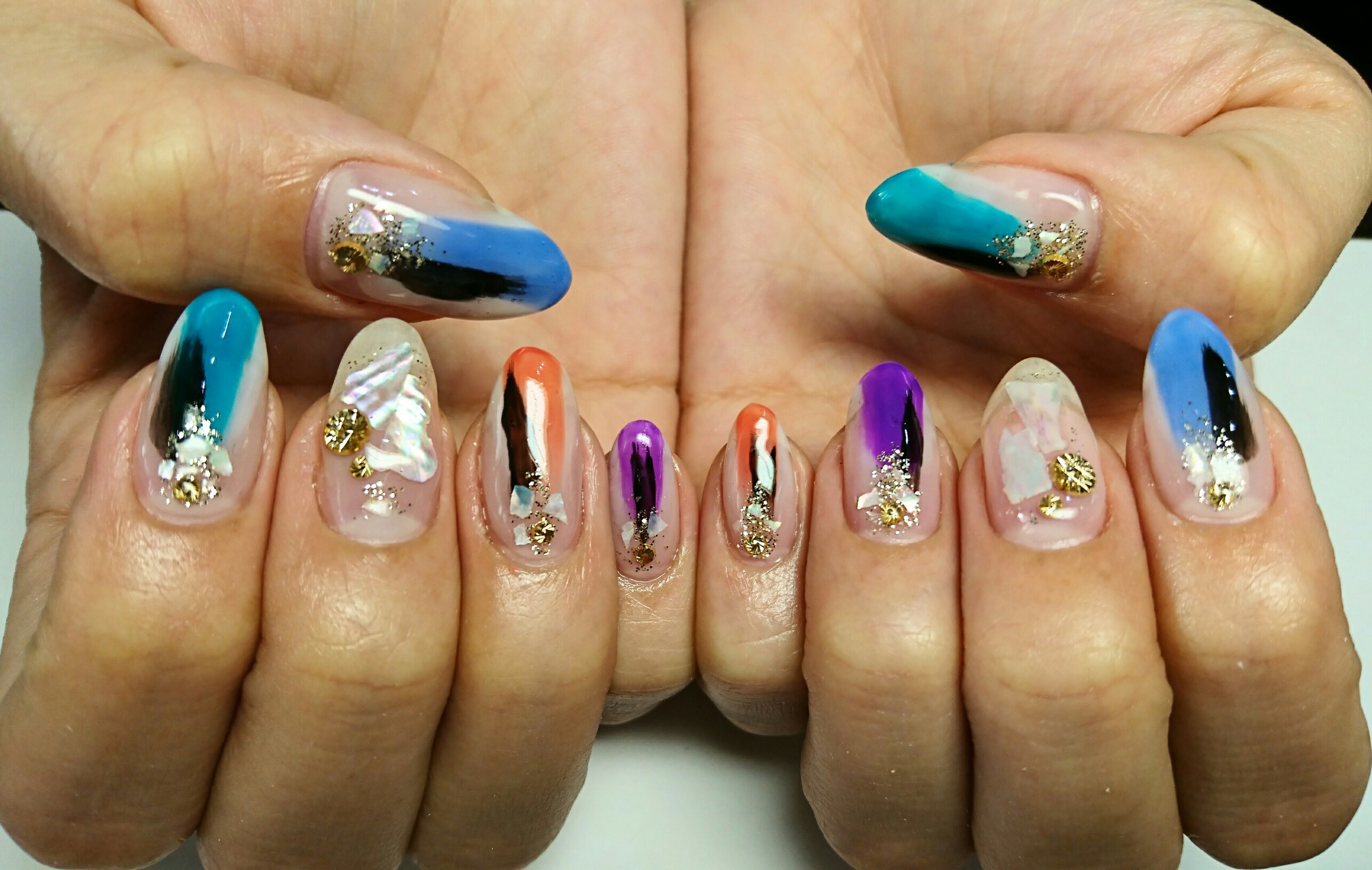 大胆なブラシワークがオシャレなネイルデザインです☆