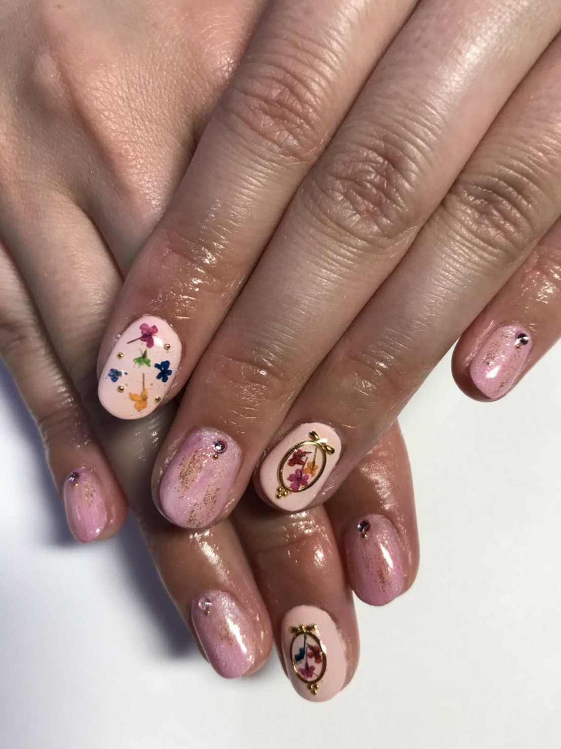 小花の押し花が可愛いネイルデザインです☆