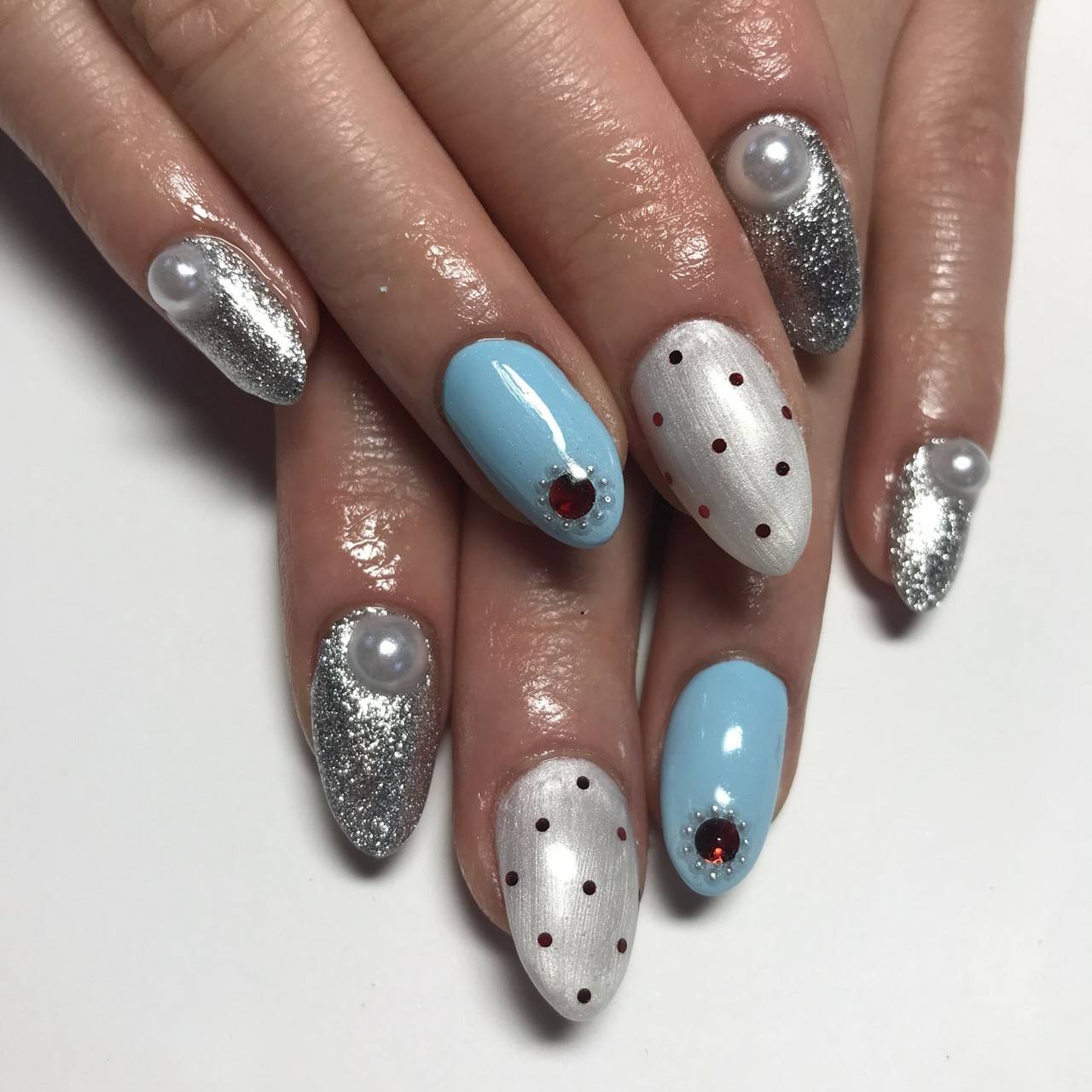 パールやラメにパステルカラーのベースを使った春らしいデザインです☆
