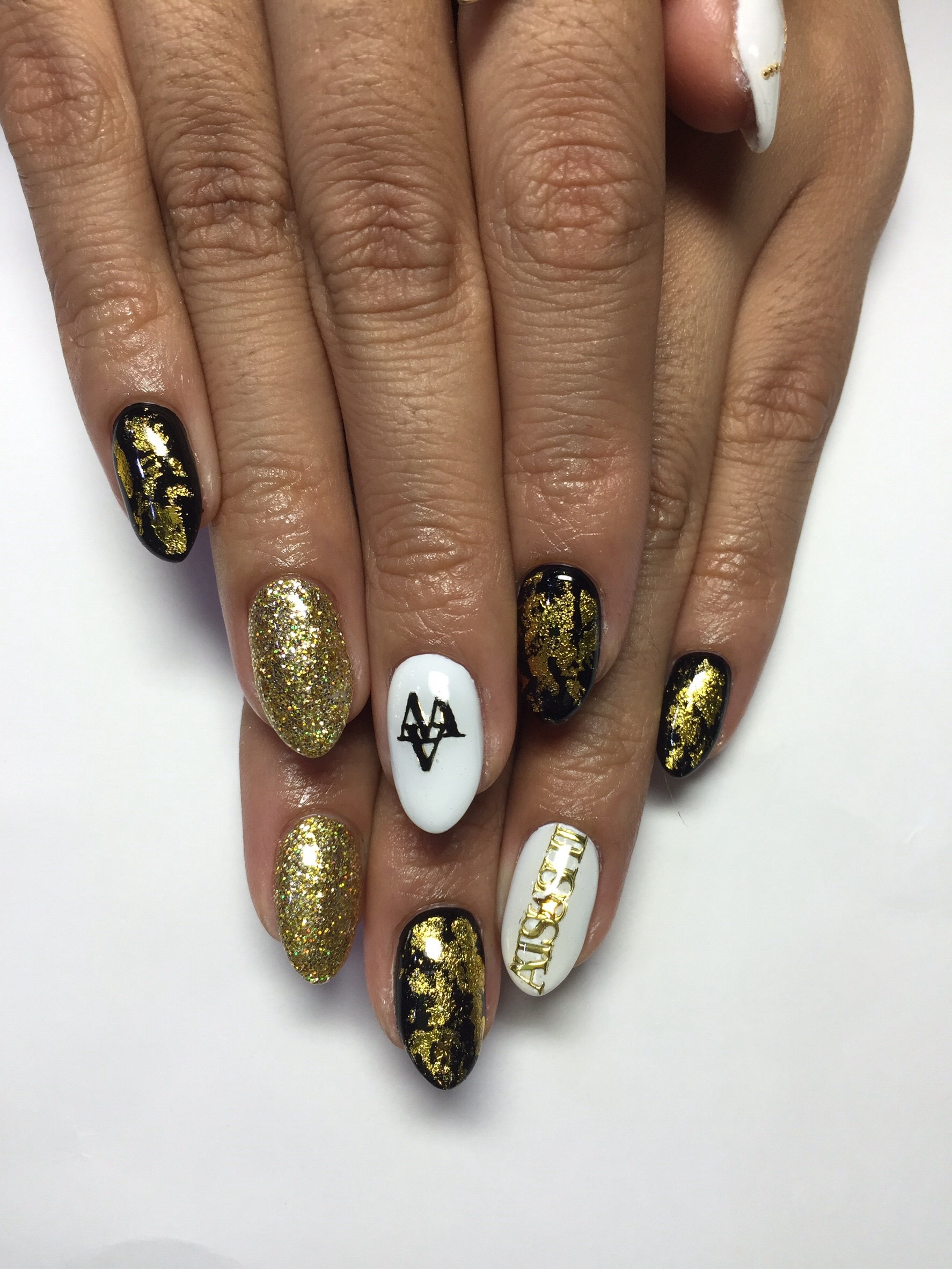モノトーンのベースに華やかなゴールドを合わせてクールなデザインに仕上げました☆