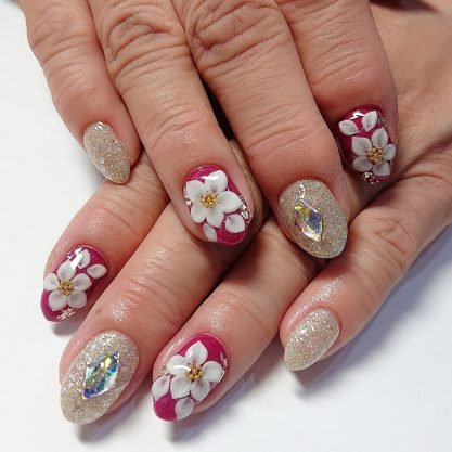 3Dの立体的な花柄が可愛いネイルデザインです☆